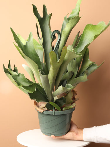 A mature Staghorn fern can be as big as 3 feet across. Sometimes, as a fun DIY project, indoor gardeners will mount their Staghorns on wooden boards or bark slabs to mimic the plant's natural instinct of growing on trees.